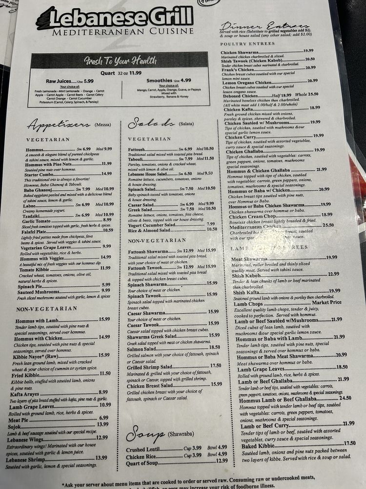 Lebanese Grill Menu (Update 2025)